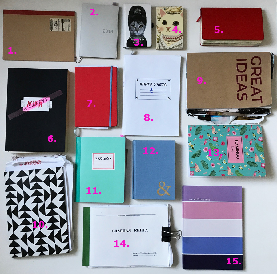 А ещё я внезапно осознала, что просто погрязла в дневниках и блокнотах. Вот те из них, которыми я активно пользуюсь в данный момент.