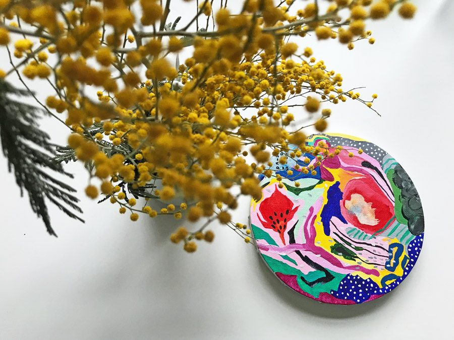 А потом я закончила маленький холст из серии Асаи, и не смогла не снять его на фоне цветка, который мне подарила Э.