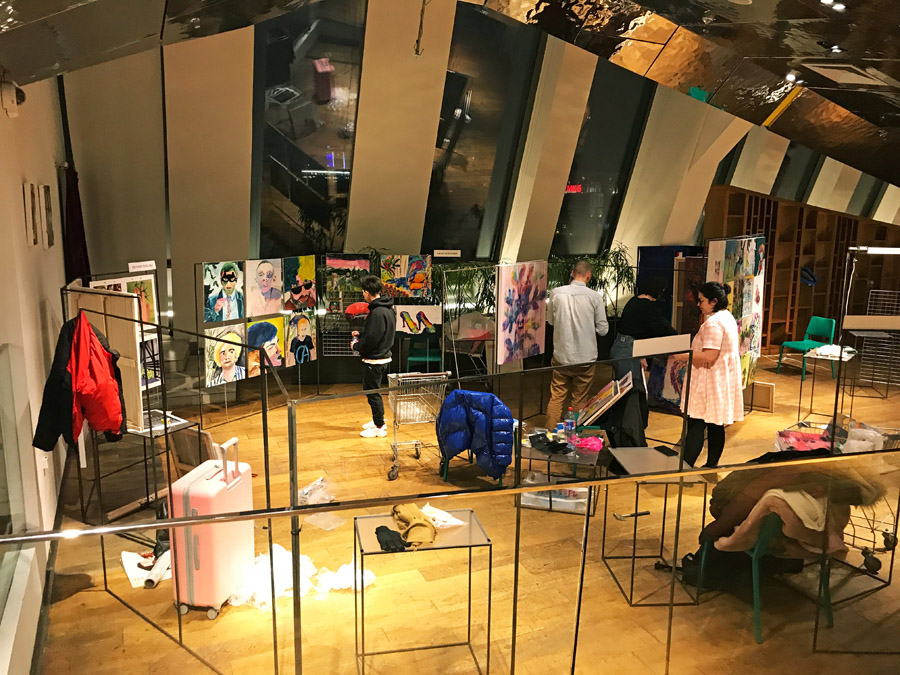 Ну и какое-то количество металлических крючков нашла дома, они у меня ещё со времен Строгановки остались. В итоге весь рюкзак был забит монтажными принадлежностями, удалось туда ещё впихнуть несколько маленьких работ на дсп (они как назло тяжёлые), ну и металлический короб для зоны распродажи, куда все эти маленькие холсты я планировала сложить. Большие холсты распихала по сумкам, взять получилось только часть из них, да я и не понимала толком, сколько именно работ уместится на стенде, организаторы так и не сообщили, какой именно у него будет размер. В общем, стало понятно, что ходок нужно будет делать несколько, можно было бы взять такси, но даже если довезти всё за раз, одной сложно это перетаскивать, часть вещей пришлось бы оставлять без присмотра, в общем, я решила не париться и для начала взять ровно столько, сколько смогу увезти сама.