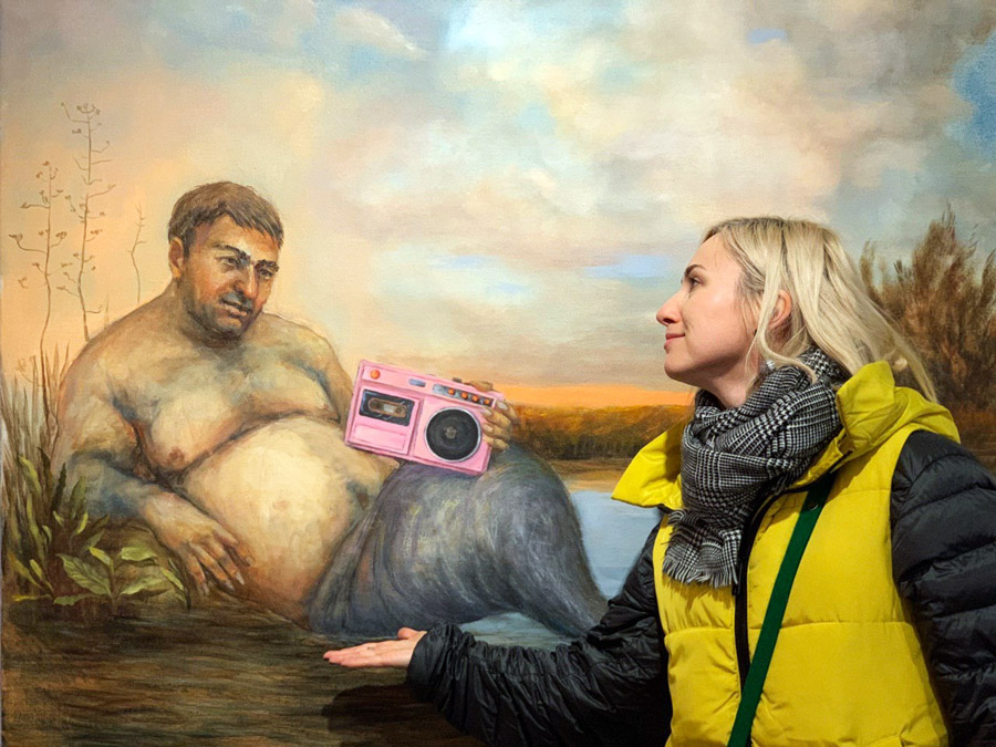 Была парочка классных работ, например, вот этот пейзаж, или инсталляция с цветами, ну и роскошный мужчина-русал, разумеется.