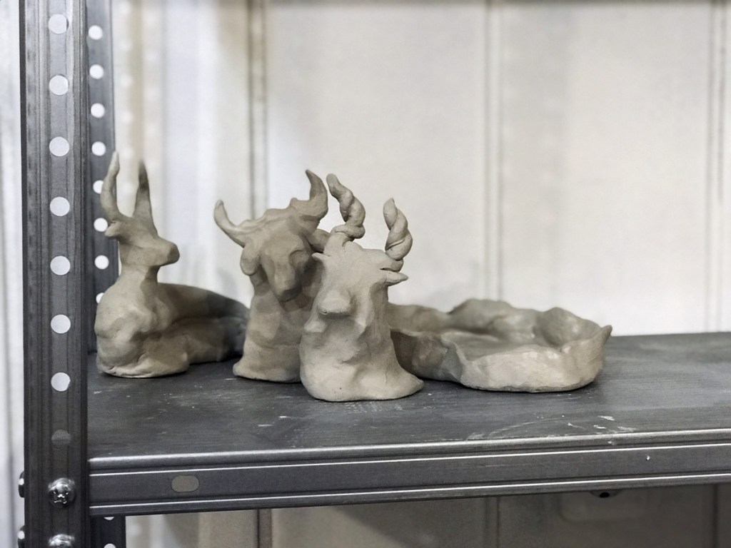 Сегодня произошло историческое событие — я вернулась в керамичку спустя почти три года простоя. Свои первые шаги в этом направлении (занятия в детской студии керамики не в счёт) я сделала, когда работала в Британке — там была мастерская, которой все преподы могли пользоваться бесплатно, И я, разумеется, пользовалась, Те первые фигурки были довольно спонтанными, я их лепила исключительно для собственного удовольствия, просто брала в руки глину и на ходу придумывала форму. Часть мини-скульптур, которые были сделаны в тот период, совсем недавно переехали в галерею JART, П. выбрала несколько штучек, которые ей понравились, и забрала на реализацию. Что-то я раздарила, чем-то сама пользуюсь дома. Но всё время хотелось налепить ещё, и вот, наконец, это случилось!
