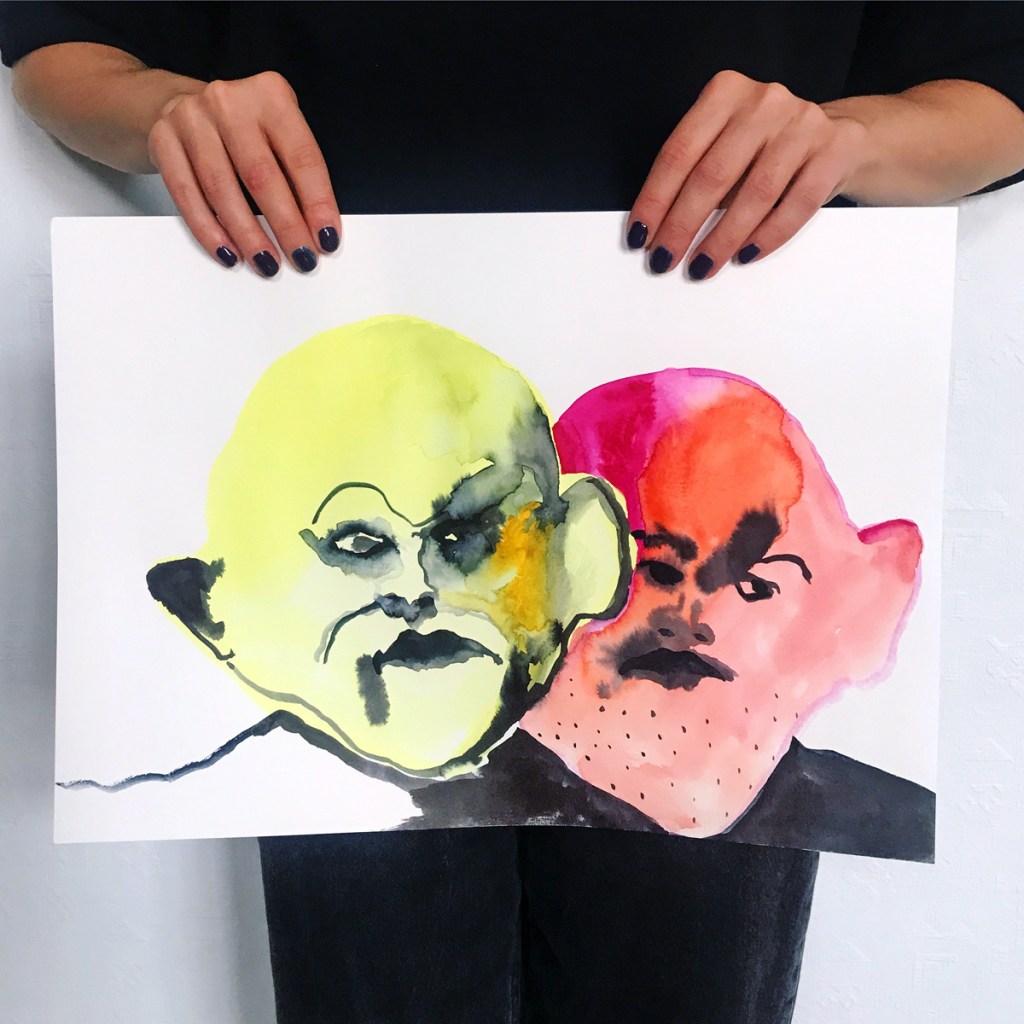 В итоге эту идею я всё равно хочу реализовать, но уже в своём темпе и попозже, а пока в серию добавляется такой вот портрет Жёлтого ублюдка, которому я придумала дружочка — Розового ублюдка. В фильме и комиксе его нет, но что поделать)