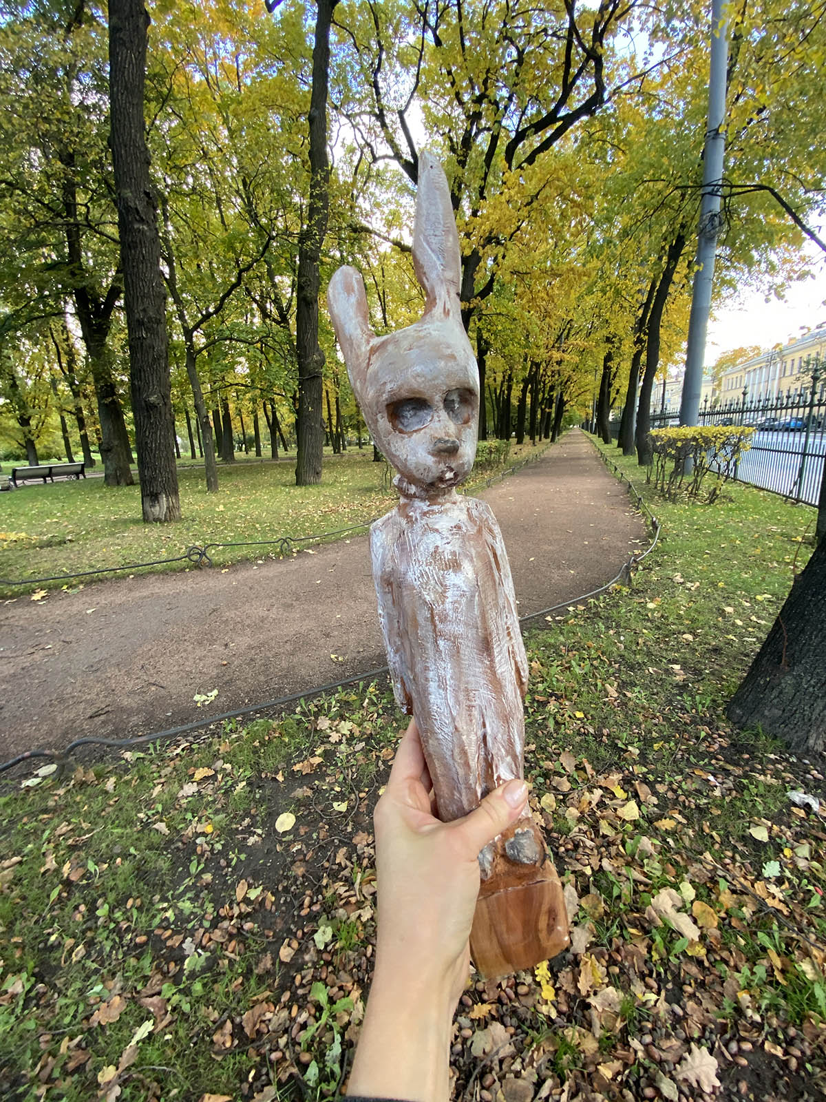 И ещё одна история, которую хочу сохранить на память. Как это обычно и бывает, рабочая суета на ярмарке меня так поглотила, что я толком не успела рассмотреть работы других художников (в идеале обычно планирую делать подробный фото-отчёт всего, что понравилось, чтобы из него потом собирать свою вымышленную коллекцию). Но кое-что всё-таки успела выложить в сториз. И так получилось, что через эту сториз одна из сфотографированных мною работ нашла своего нового владельца (не буду разглашать имён, всё-таки коллекция — это дело очень личное)). Скажу лишь, что я как посредник этой внезапной арт-сделки временно являюсь хранителем зайца, чему безмерно рада, потому что мы прекрасно проводим время вместе. Он даже ходил со мной гулять в Таврический сад (планировала сделать серию снимков из Петербурга на манер садовых гномов Амели, но штормовое предупреждение помешало этому гениальному замыслу).
